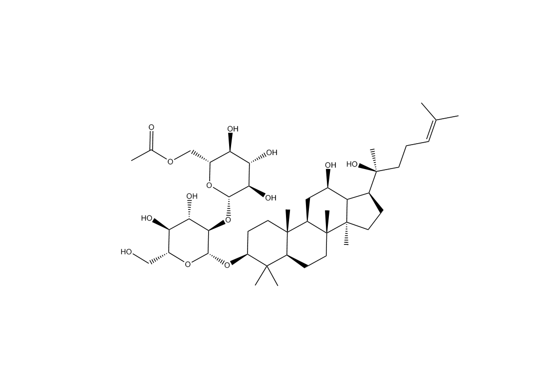 【英文別稱】 (3beta,12beta)-12,20-Dihydroxydammar-24-en-3-yl 2-O-(6-O-acetyl-beta-D-glucopyranosyl)-beta-D-glucopyranoside
