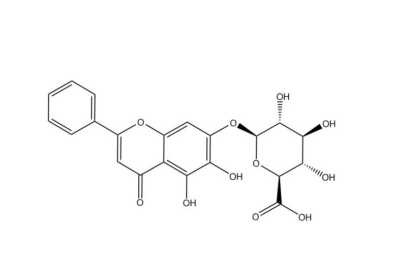 【IUPAC名稱(chēng)】 (2S,3S,4S,5R,6S)-6-(5,6-二羥基-4-氧代-2-苯基色烯-7-基)氧基-3,4,5-三羥基-2-羧酸