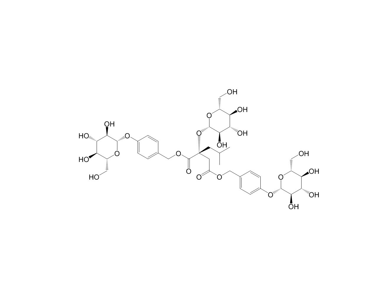 【英文別稱】 (2R)-2-Isobutyl-2-hydroxysuccinic acid bis[4-(β-D-glucopyranosyloxy)benzyl] ester