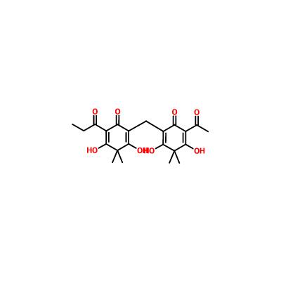 【英文別稱】 2,5-Cyclohexadien-1-one,2-[(5-acetyl-2,4- dihydroxy-3,3-dimethyl-6-oxo-1,4-cyclohexadien- 1-yl)methyl]-3,5-dihydroxy-4,4- dimethyl-6-(1-oxopropyl)-
