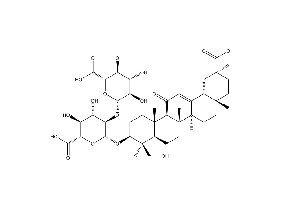 【英文別稱】 [(18α)-20β-Carboxy-11-oxo-30-norolean-12-en-3β-yl]2-O-β-D-glucopyranuronosyl-α-D-glucopyranosiduronic acid